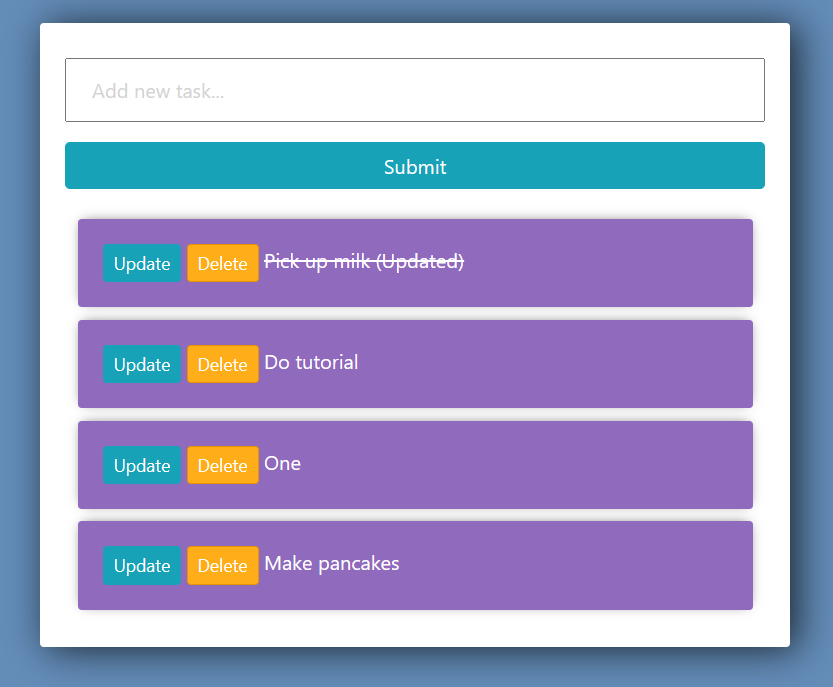 - Users can create tasks, update their status, and delete them as needed. Each task includes a title, a completion status, and a timestamp for when it was created.